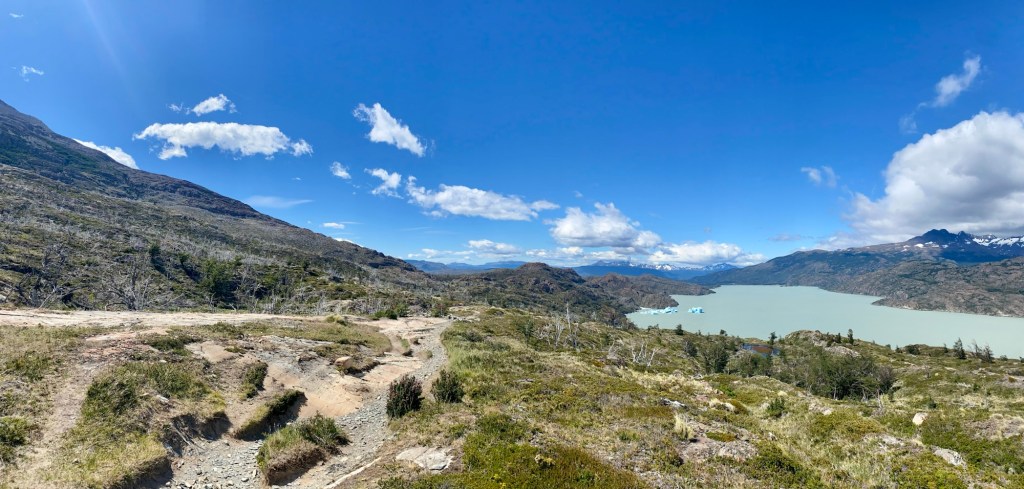 We took our time enjoying the trail which looked like a coastal path with the deep blue of Lake Grey. It was an exposed section and at various points the wind would throw itself at you causing mayhem.