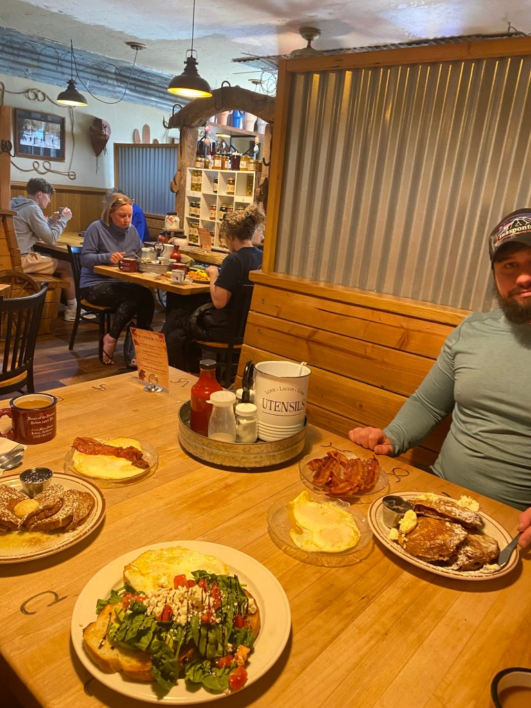 I emailed Blaze, an on-trail physio, for a telephone appointment. We packed our lives off of Heavyweights floor and headed out for a great breakfast of French toast and eggs at Julian Bakery. Coffee was served in huggable large enamel mugs with fresh cream. We parted ways with Heavyweight, feeling a pang of jealousy as he headed back out to trail, the last of our trail family to leave us.