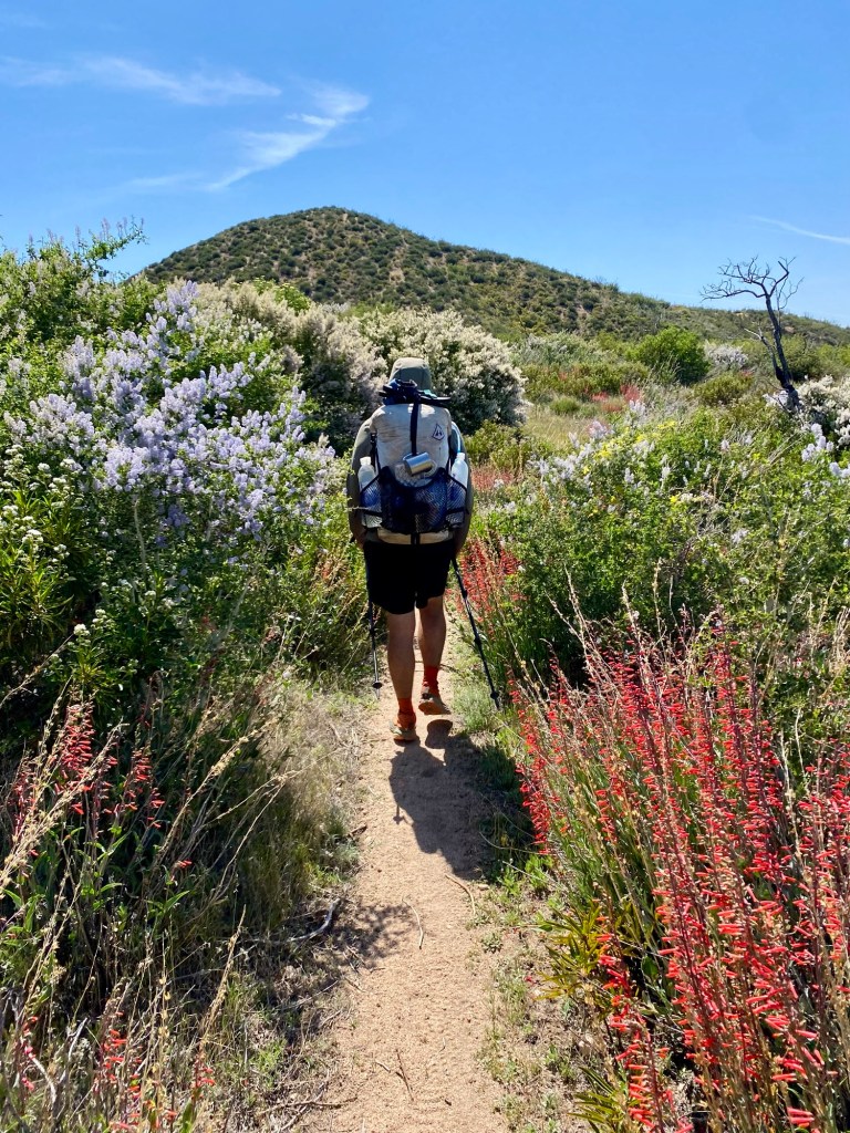 The heatwave continues, reaching about 31°C today and we just happened to be walking in an exposed canyon section. Whenever we got to a pocket of shade on trail the group would stop on the path itself, plonking down to rest. Luckily we seem to be the only people on trail hiking at this pace and have only seen two other hikers since leaving Big Bear.